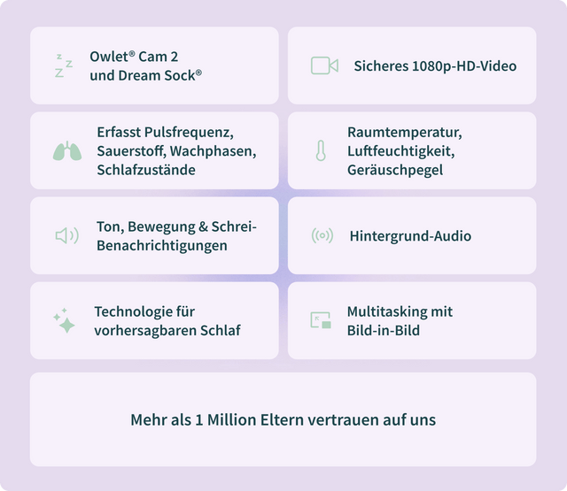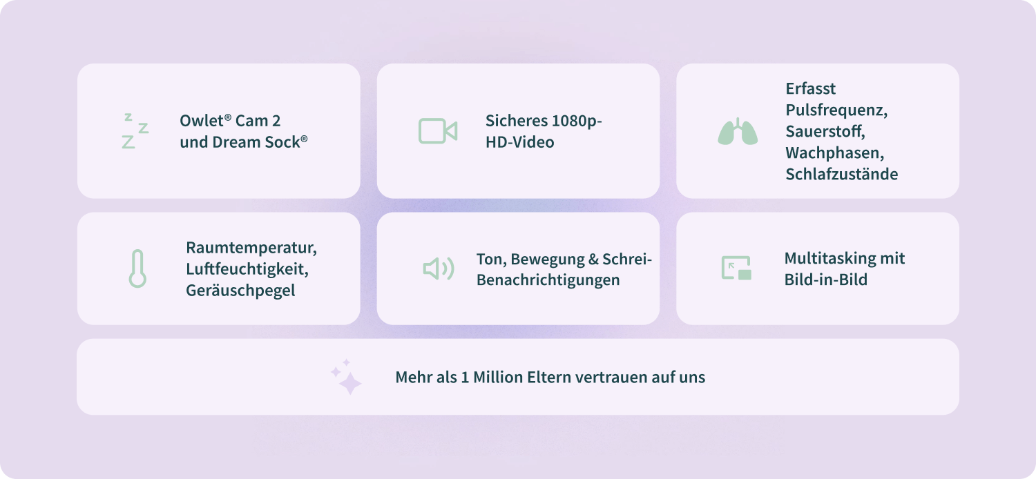 Willkommen in einem neuen Zeitalter der Betreuung von Säuglingen mit medizinisch geprüften Überwachungsgeräten, die eine Überwachung auf medizinischem Niveau in Ihr häusliches Umfeld bringen. Sehen Sie sich Gesundheitswerte in Echtzeit an und erhalten Sie Benachrichtigungen für ultimative Sicherheit.