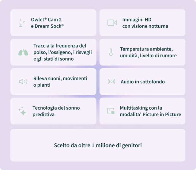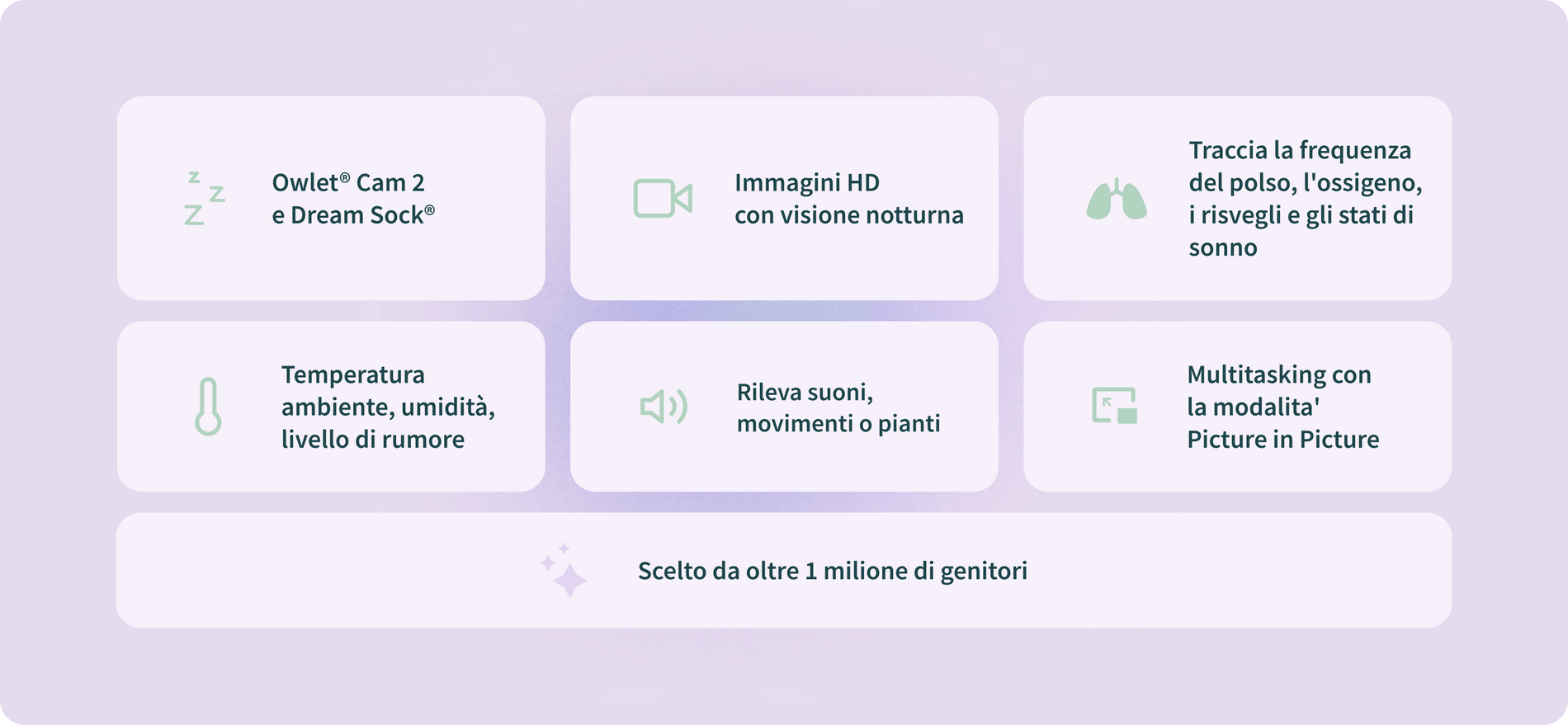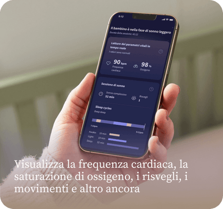 Benvenuto in una nuova era dell'assistenza infantile con monitor dotati di certificazione sanitaria che portano il monitoraggio di livello professionale a casa tua. Visualizza letture dei parametri vitali in tempo reale e ricevi notifiche per la massima tranquillità.